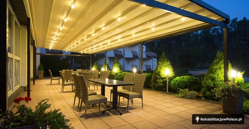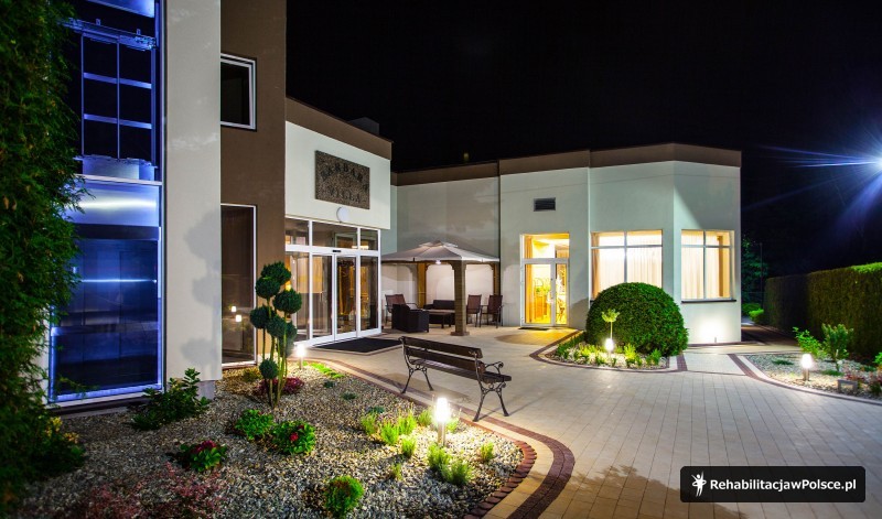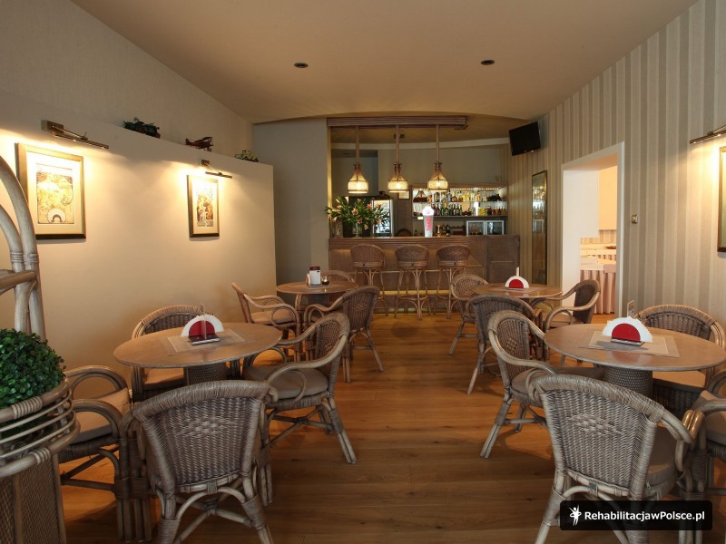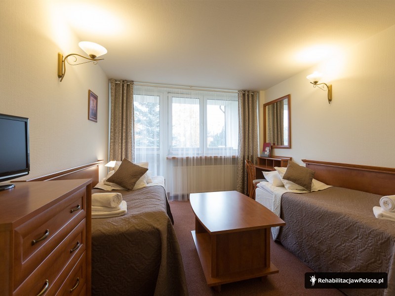 Zabiegi w cenie: kinezyterapia (sala gimnastyczna, basen kryty), fizykoterapia (krioterapia, elektroterapia, magnetoterapia, ultradźwięki, jonoforeza, sollux, bioptron, inhalacje, okłady borowinowe), hydroterapia (wirówki kończyn dolnych i górnych)